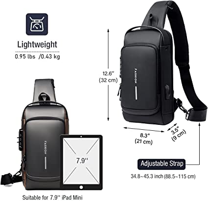Men’s Multi-function Anti-theft USB Shoulder Bag Crossbody Bag Travel Sling Bag Pack Messenger Pack Chest Bag